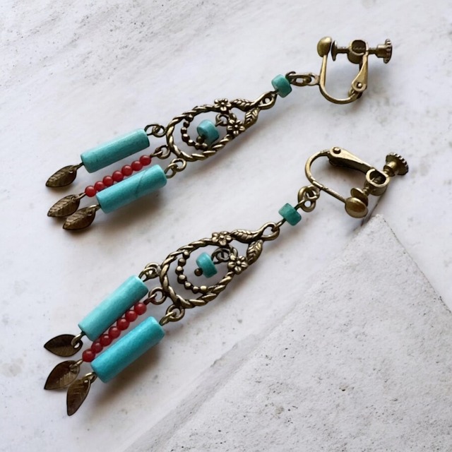 HNTK マグネサイトターコイズ&紅珊瑚 イヤリングピアス選択 P0443