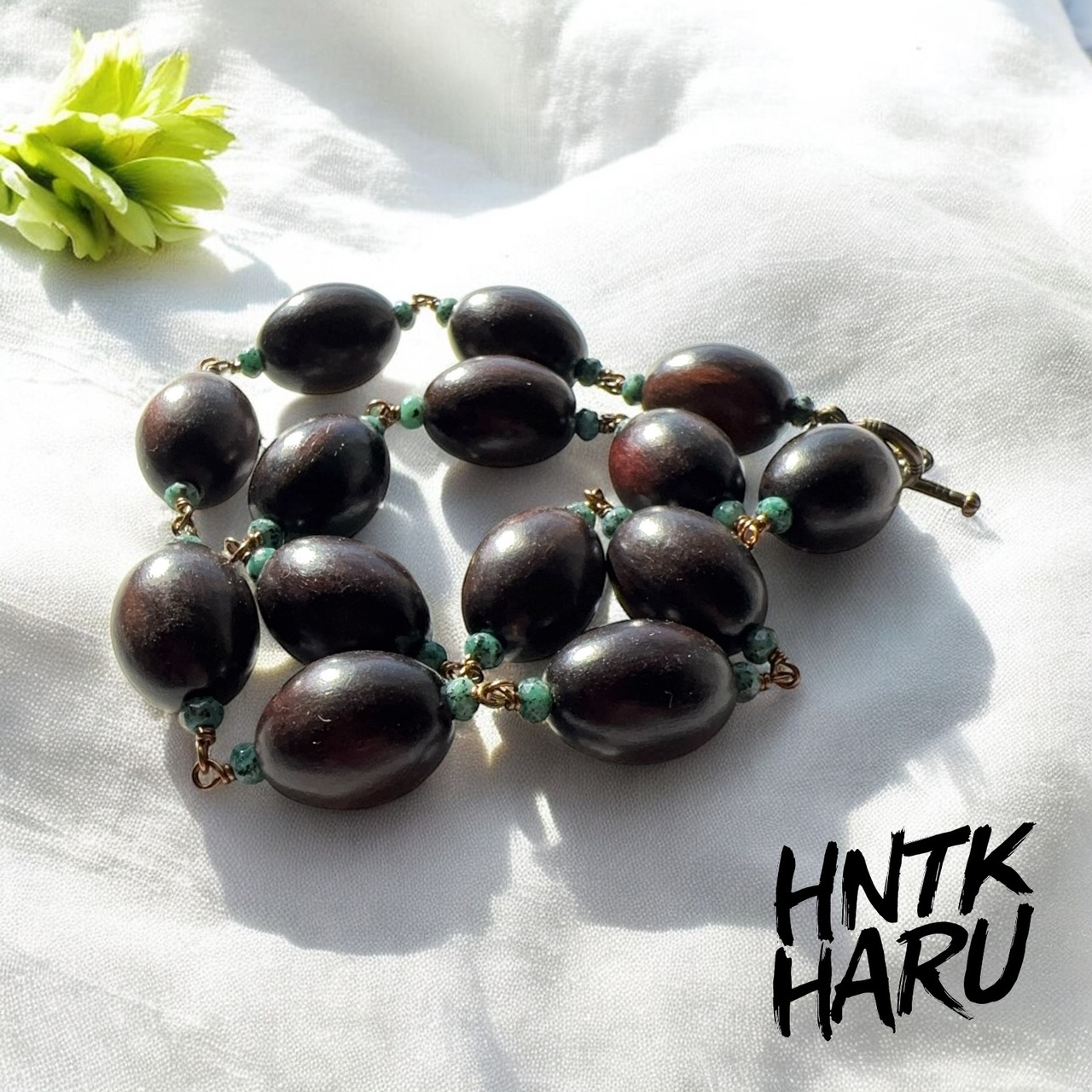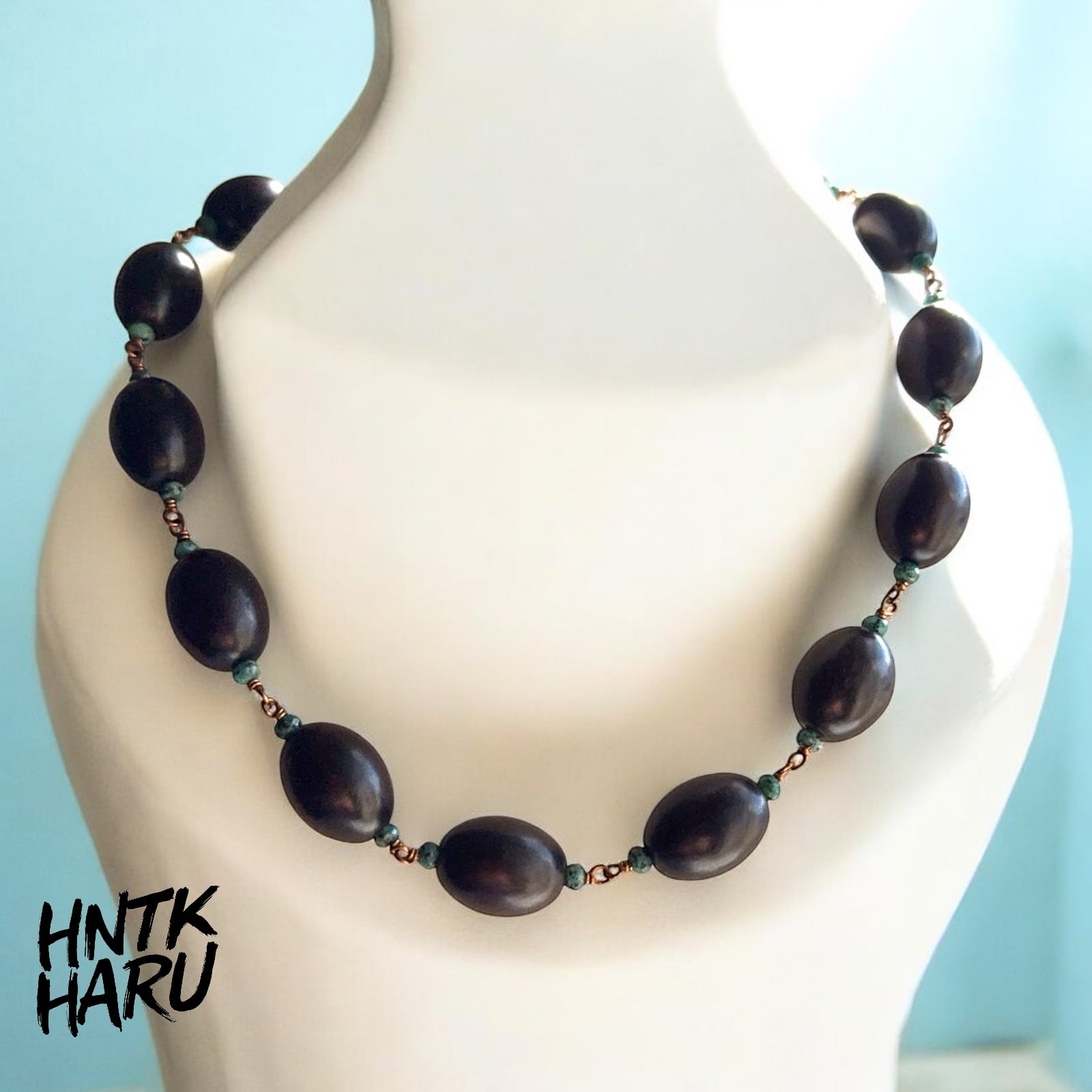 HNTK ウッドビーズ&レイクブルーヘンプストーン N0752は、自然の素材感が楽しめる特別なネックレスです。