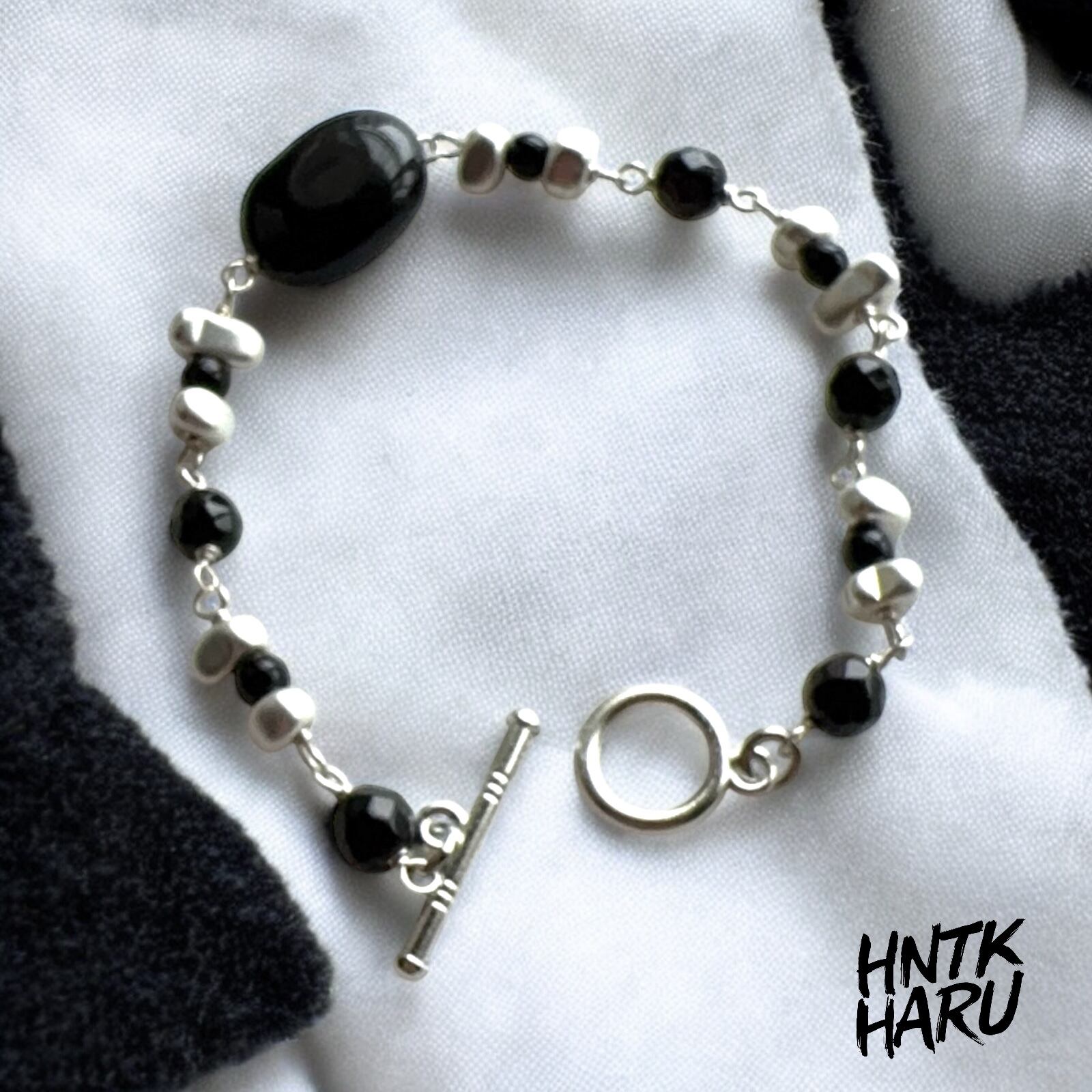 HNTK オニキス&シルバーマットヘマタイト ブレスレット B0172は、神秘的なオニキスと洗練されたシルバーマットヘマタイトが調和した魅力的なブレスレットです。