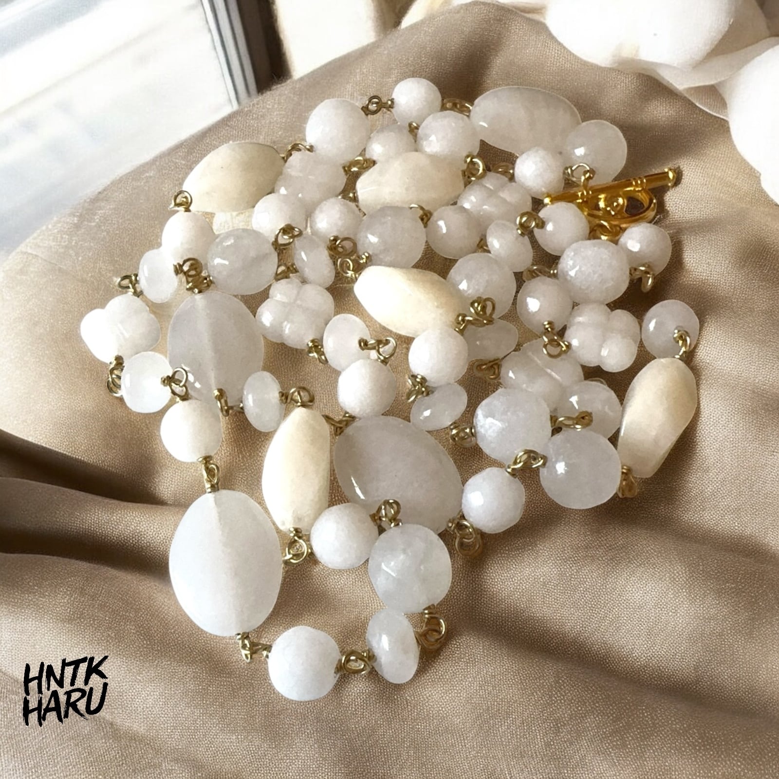 HNTK ホワイトジェイド ロングネックレス&ブレスレット N0774は、エレガントなホワイトジェイドを贅沢に使用した美しいアクセサリーです。