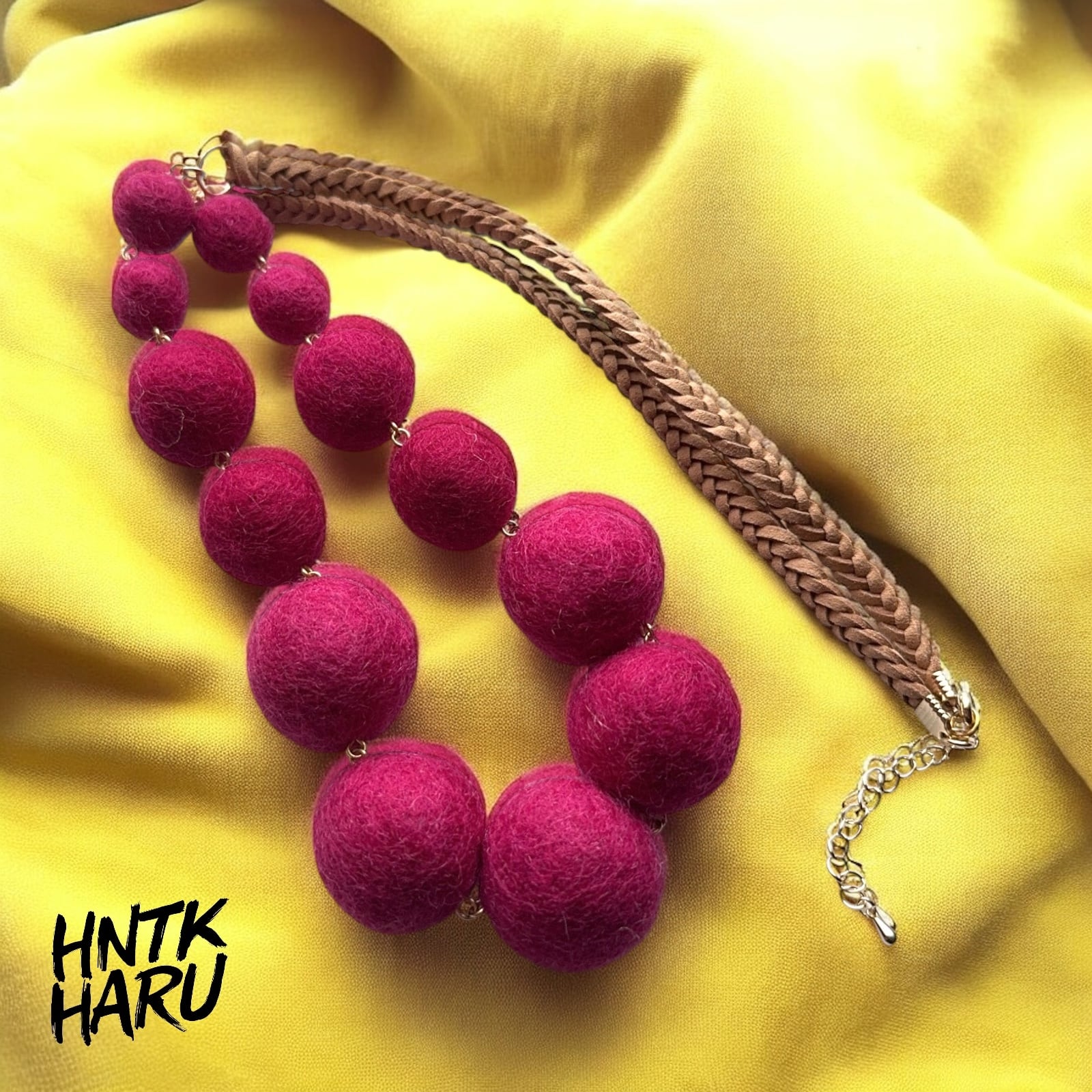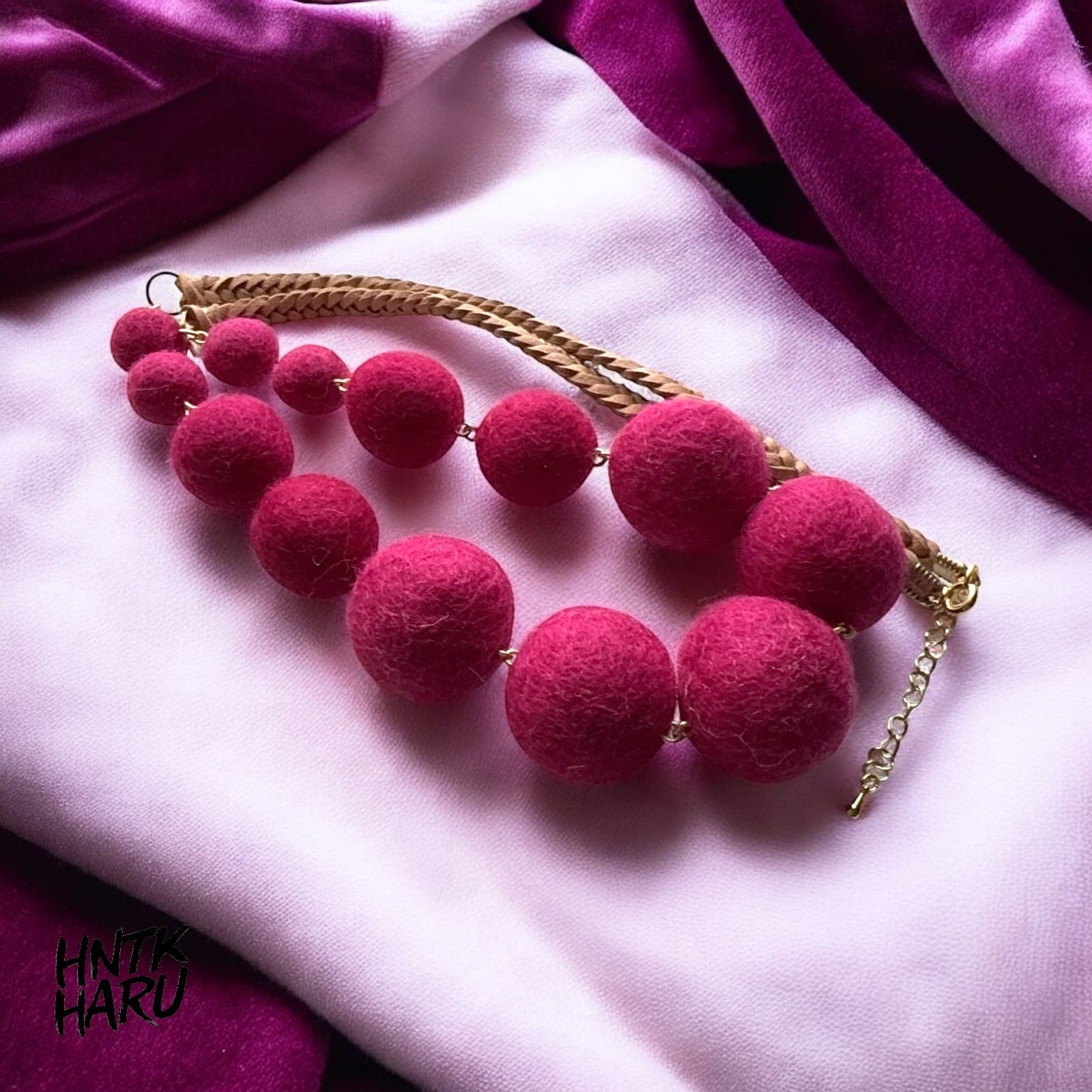 この機会に、HNTKのレッドパープル フェルトボールネックレスをぜひお試しください!