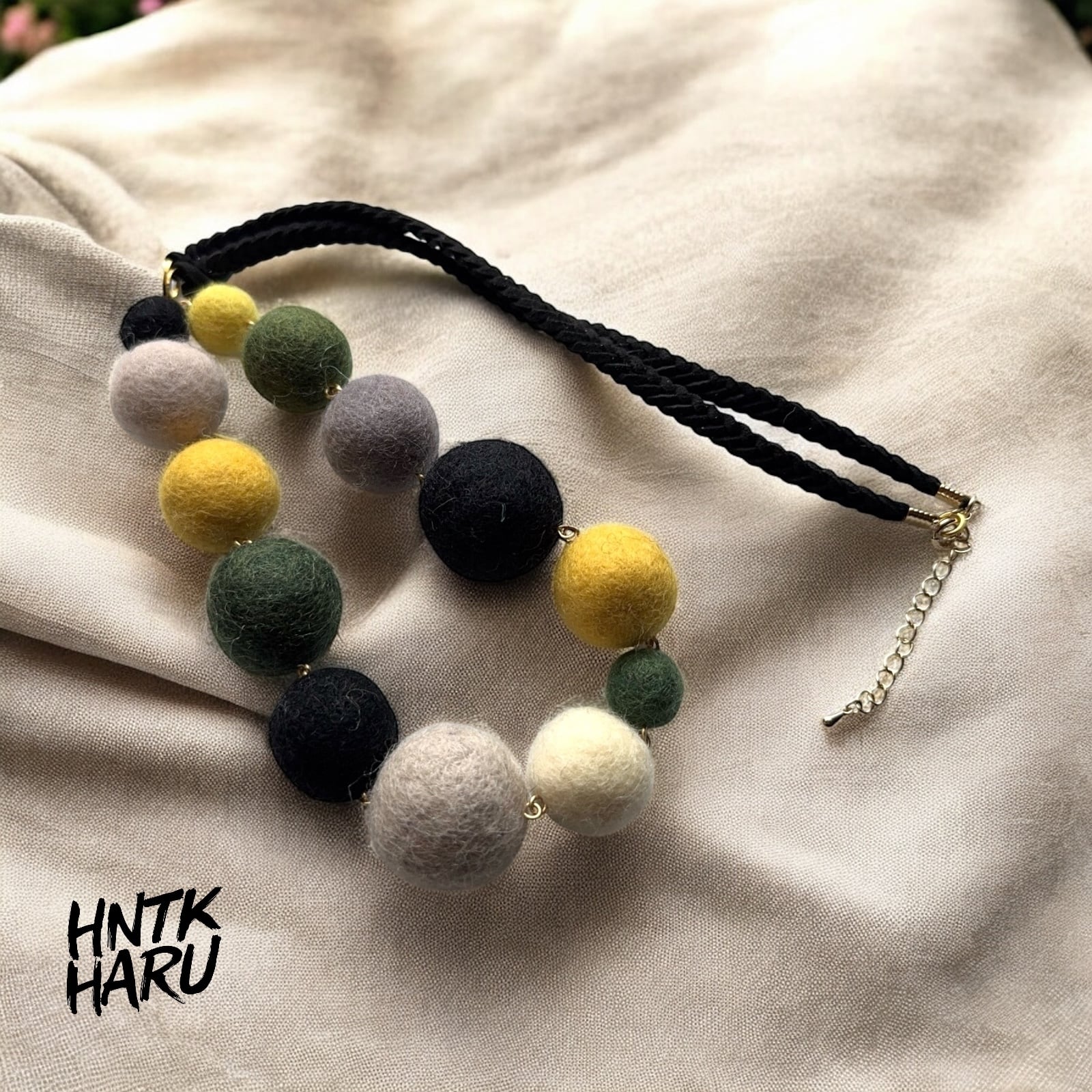 この機会に、HNTKのベージュ×ブラック×イエローフェルトボールネックレスをぜひお試しください!