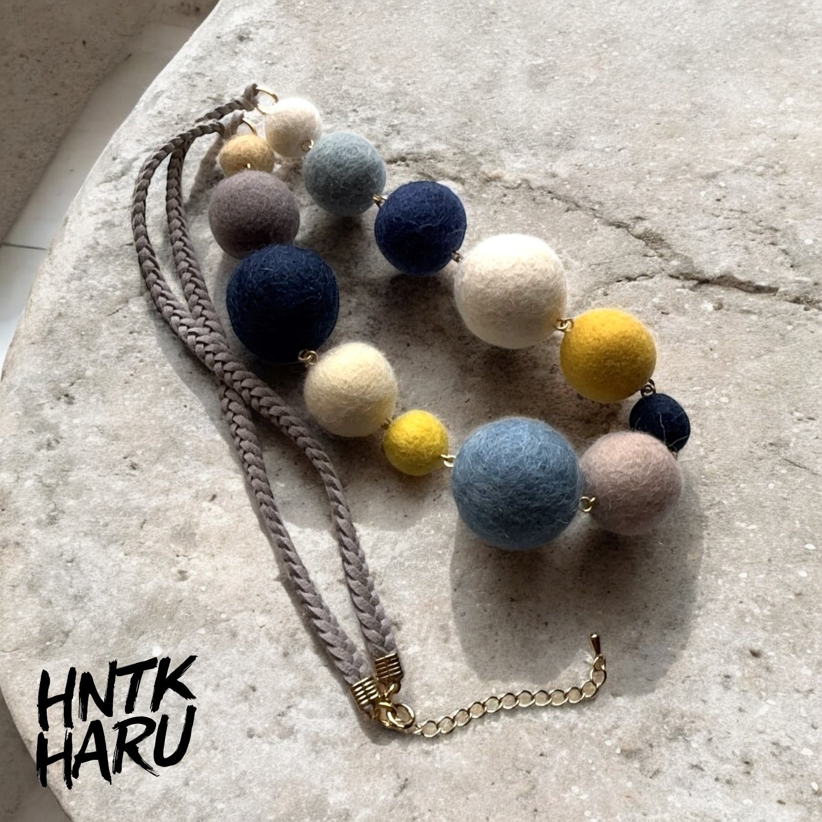 この機会に、HNTKのホワイト×ブルー×イエローフェルトボールネックレスをぜひお試しください!