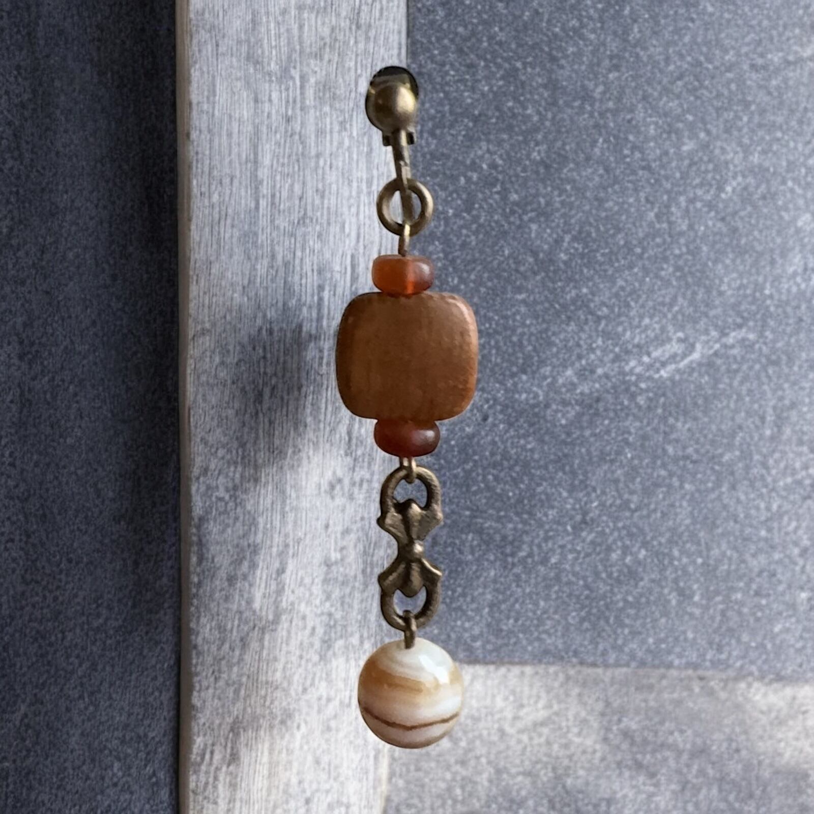 HNTK ウッドビーズ&アゲート イヤリングピアス選択 P0444は、自然の素材を活かしたウッドビーズとアゲートを使用した魅力的なアクセサリーです。