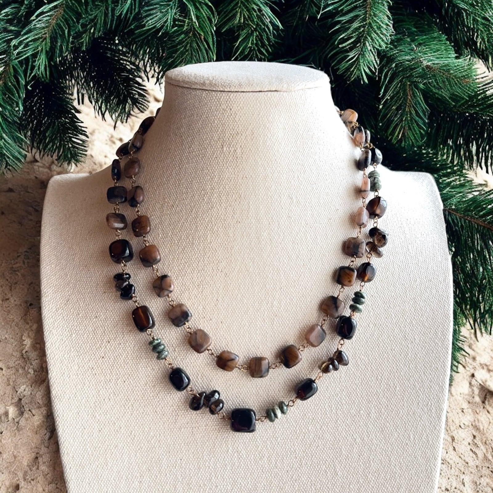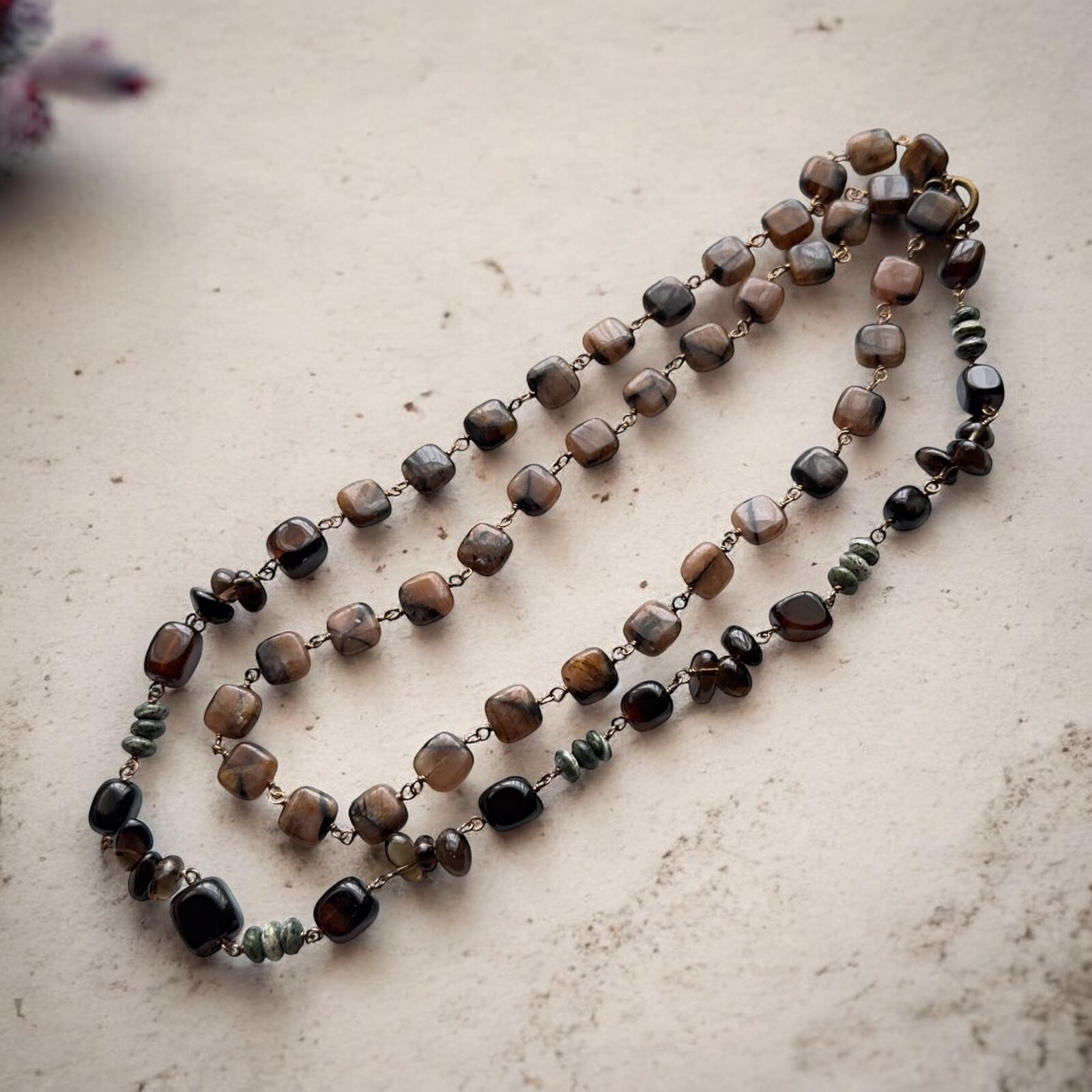 この商品は、サーペンティンやアゲートを組み合わせたデザインが特徴で、日常のコーディネートに独特の深みと魅力を添えるアイテムとしてお楽しみいただけます!