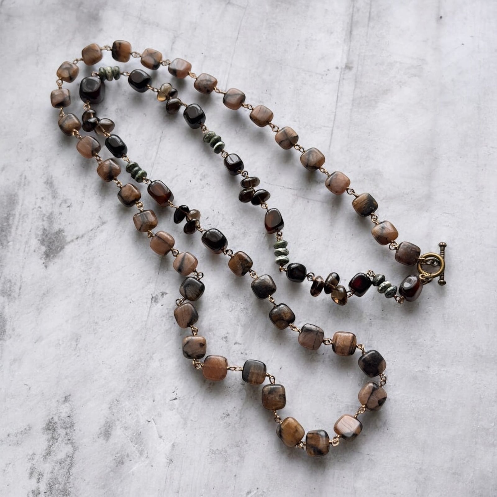 HNTK チャロアイト&スモーキークォーツ ロングネックレス N0796は、魅惑的なチャロアイトとスモーキークォーツを使用した洗練されたアクセサリーです。