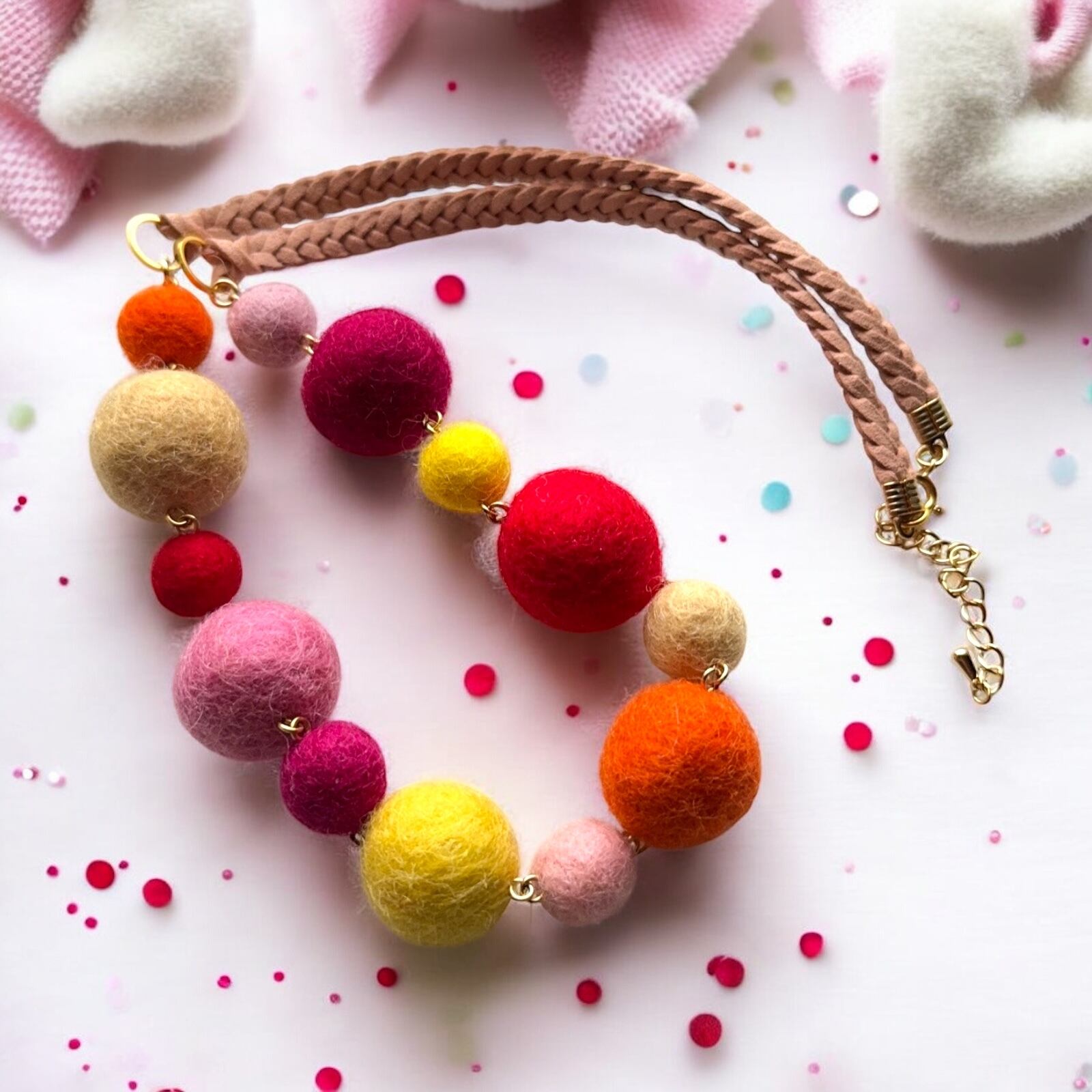 この機会に、HNTKの新作パーティーカラーフェルトボールネックレスをぜひお試しください!
