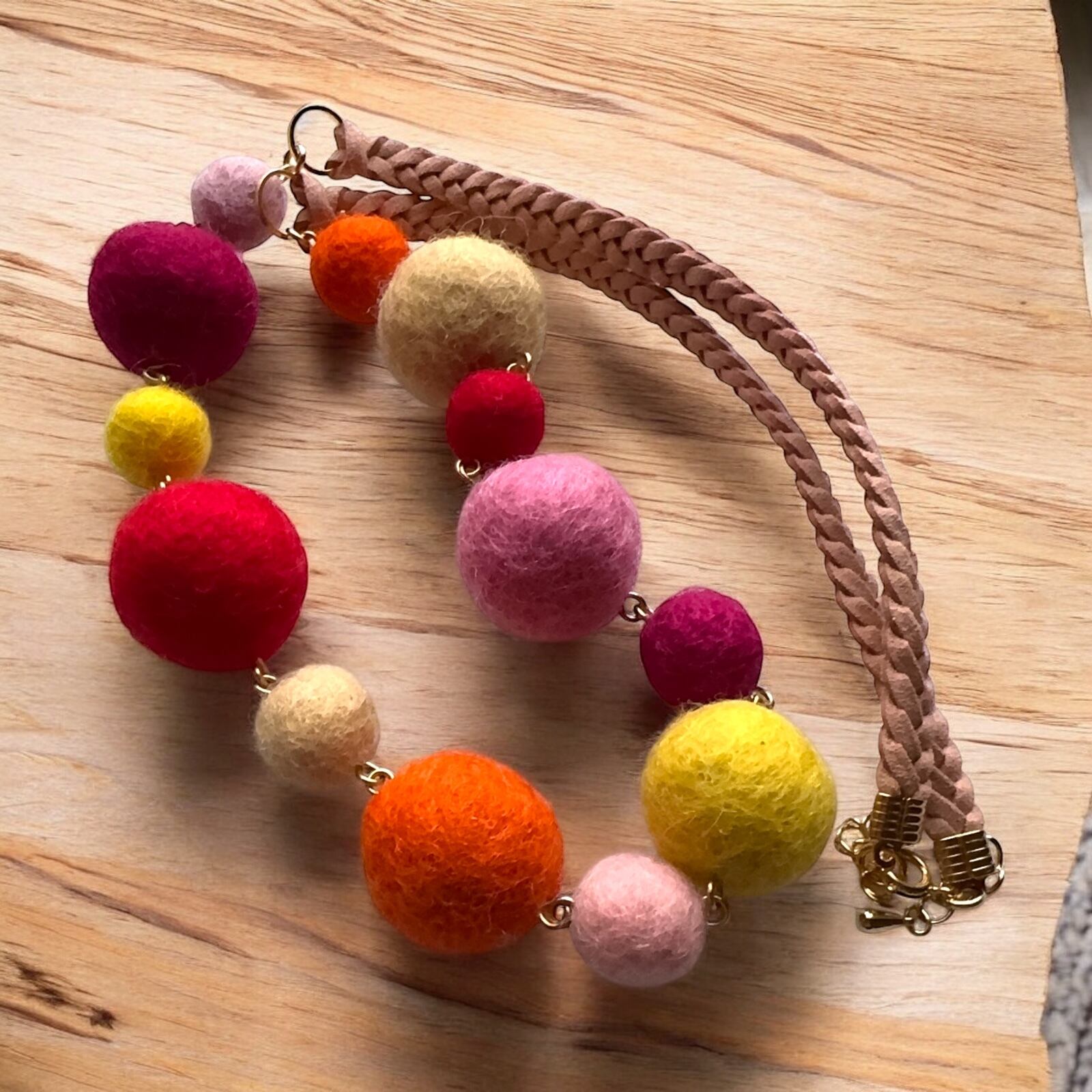 今までのフェルトボールネックレスよりボリュームも抑えたネックレスです。