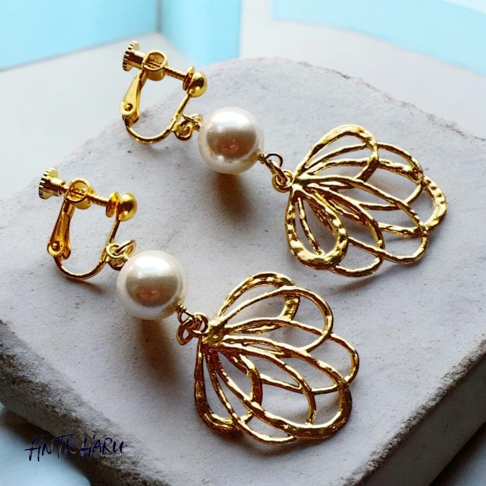 この機会に、HNTKのホワイトシェルパール&メタルパーツ イヤリングをぜひお試しください!