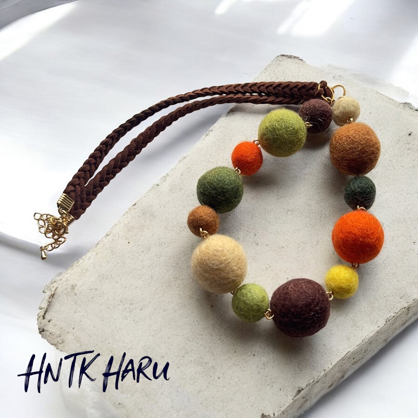 HNTK 新作ボタニカルカラーフェルトボールネックレス N0802は、自然の色彩を感じさせるボタニカルカラーのフェルトボールを使用した、鮮やかで個性的なアクセサリーです。