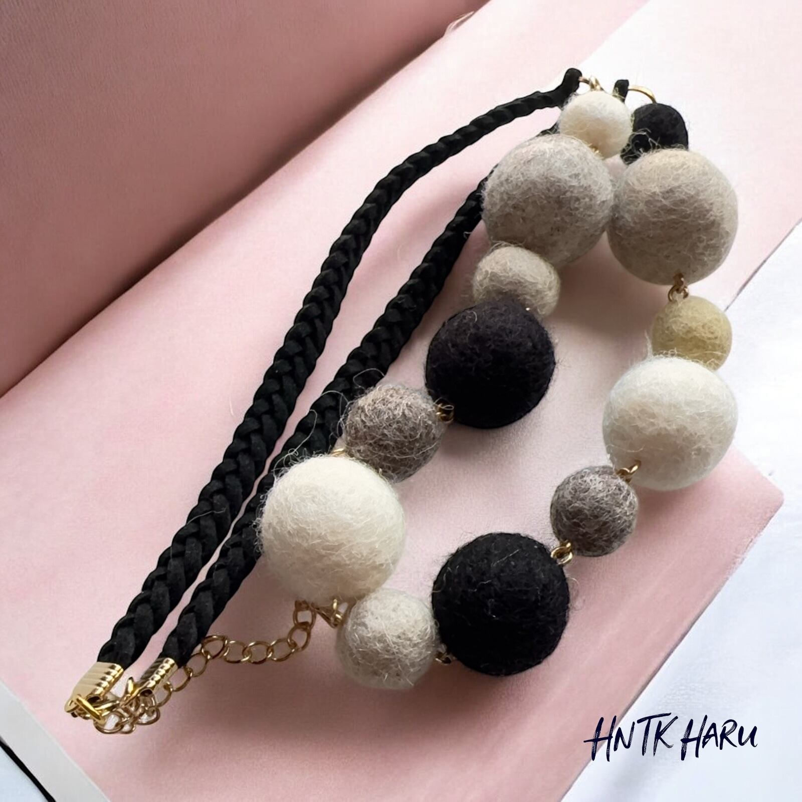 この機会に、HNTKのスモーキーカラーフェルトボールネックレスをぜひお試しください!