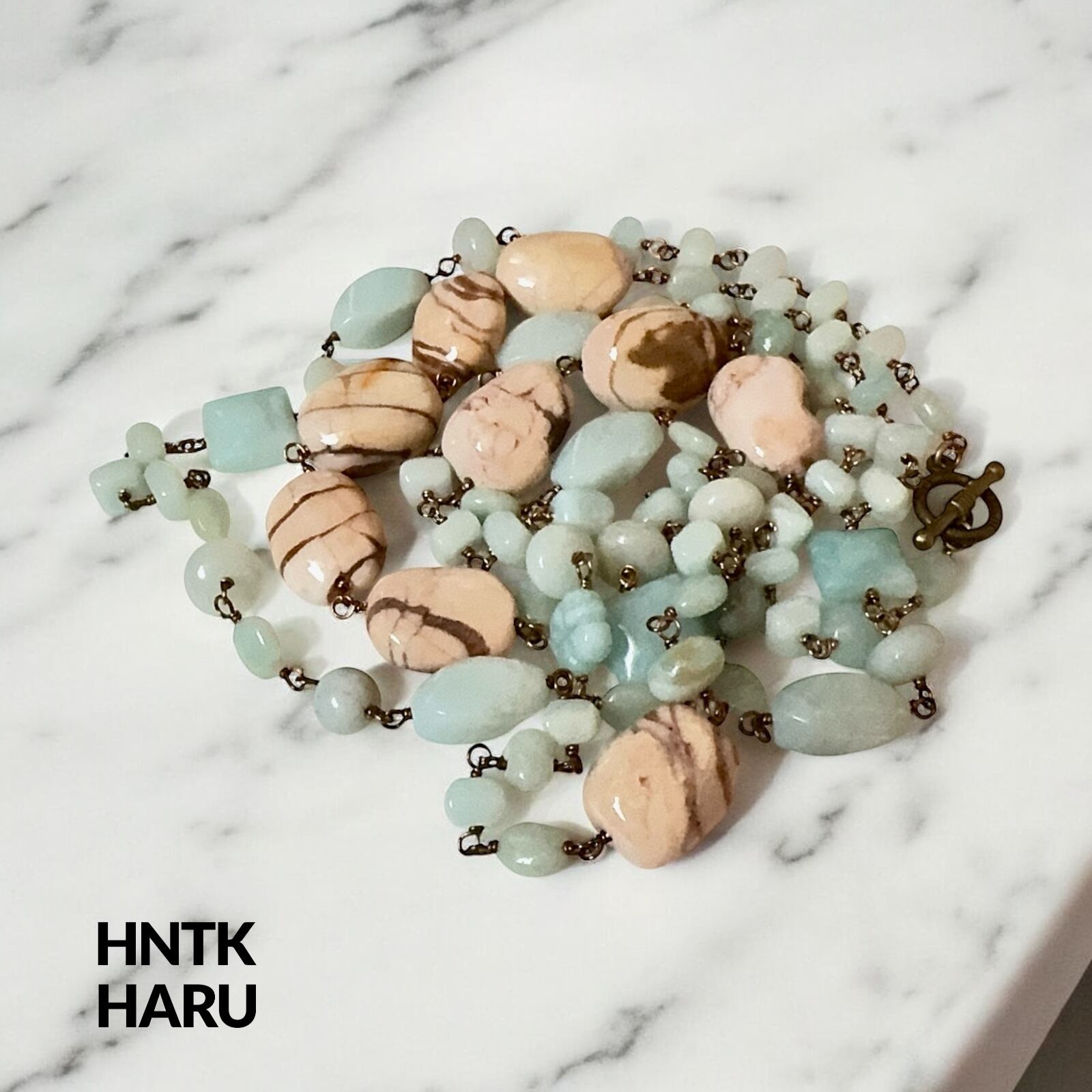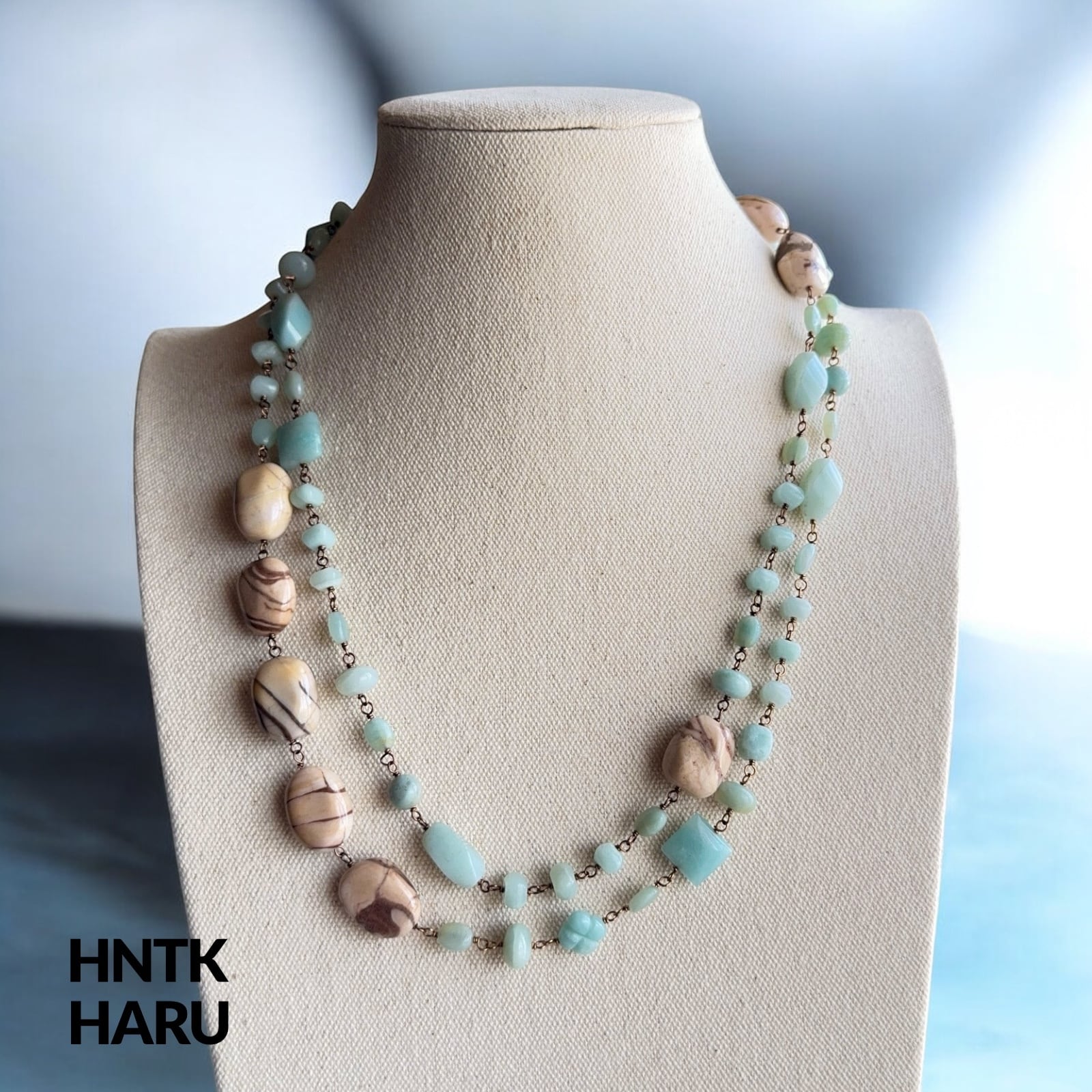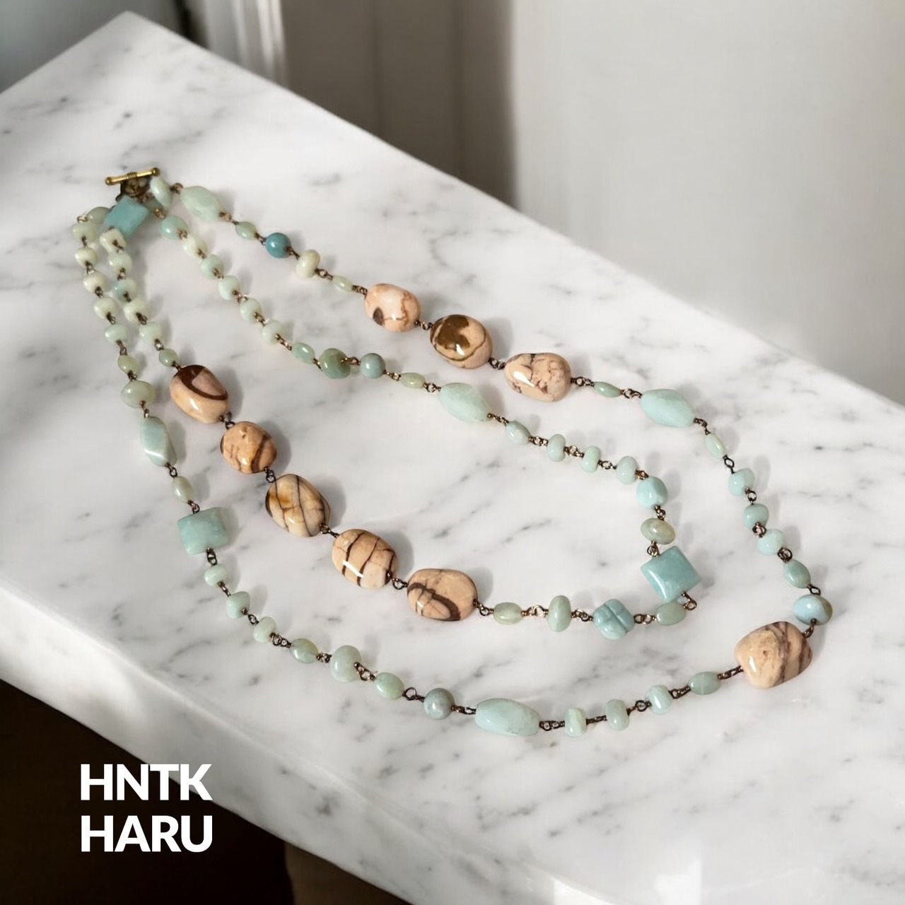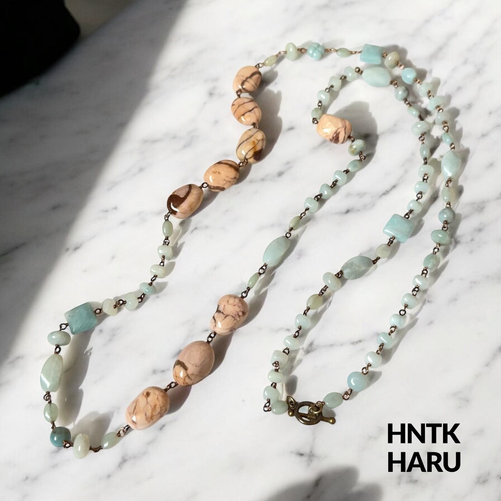 この機会に、HNTKのアマゾナイト&カプチーノジャスパーロングネックレスをぜひお試しください!