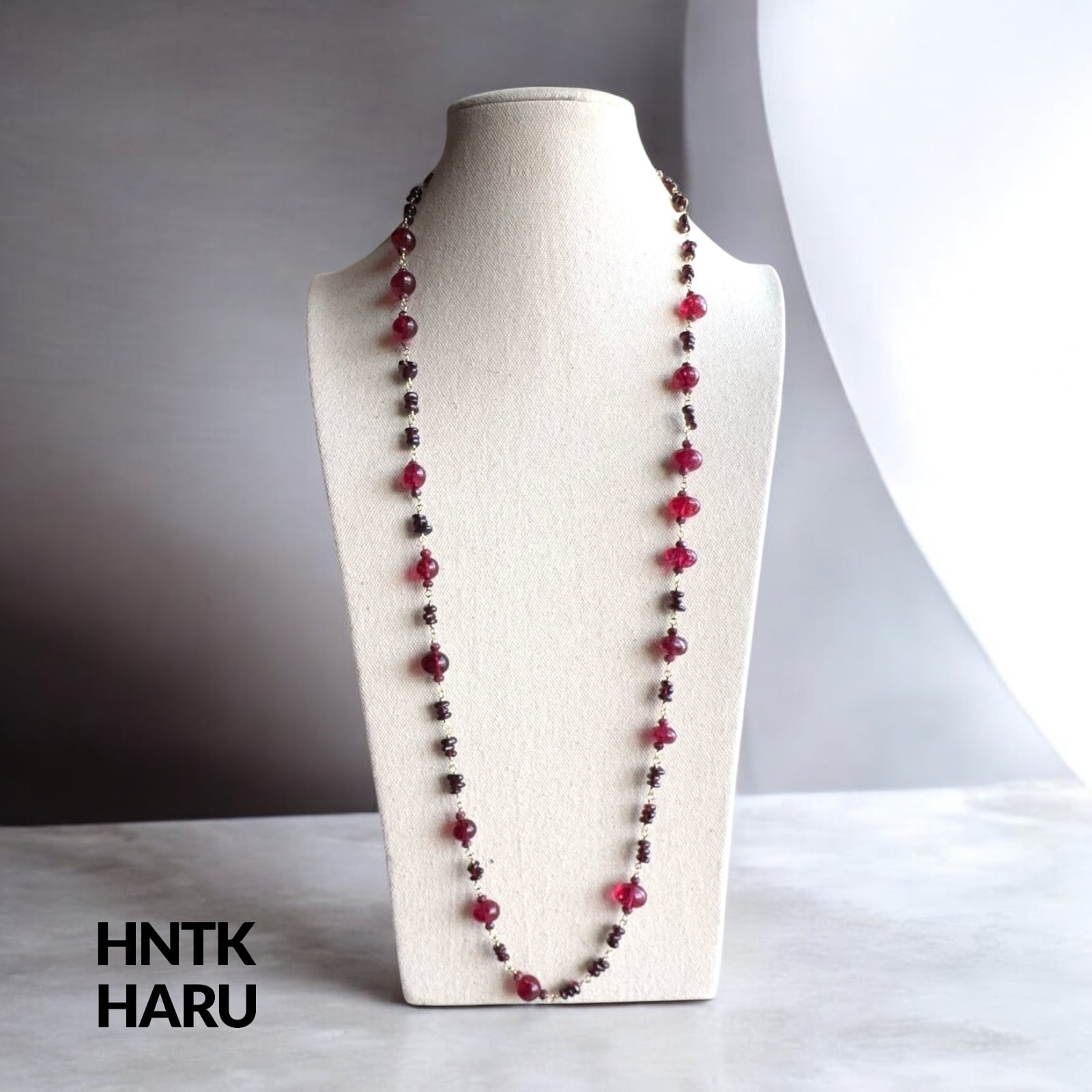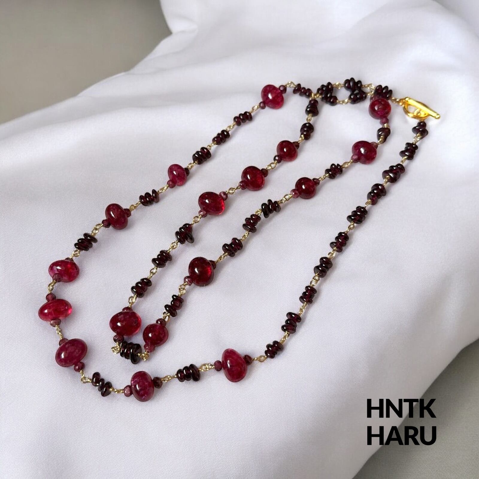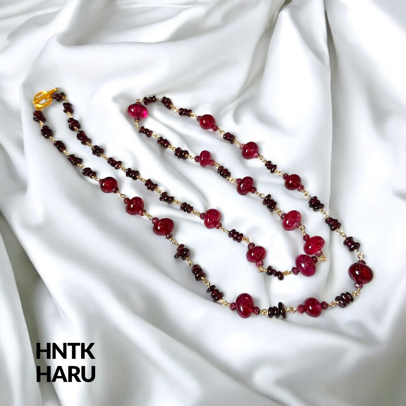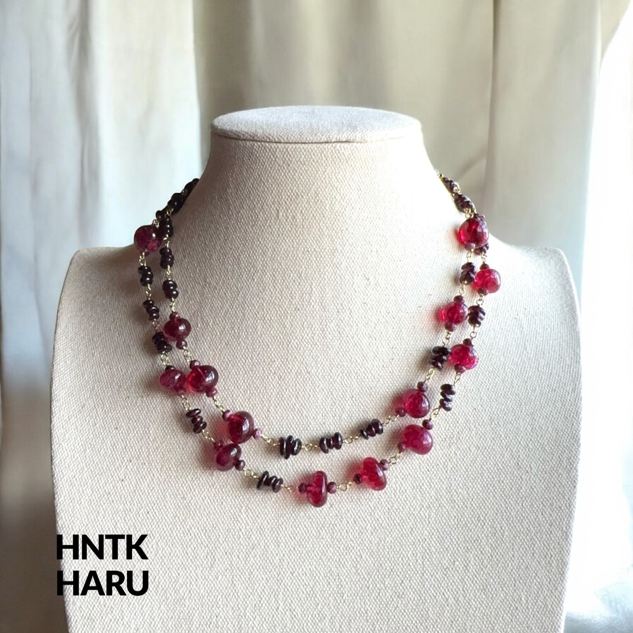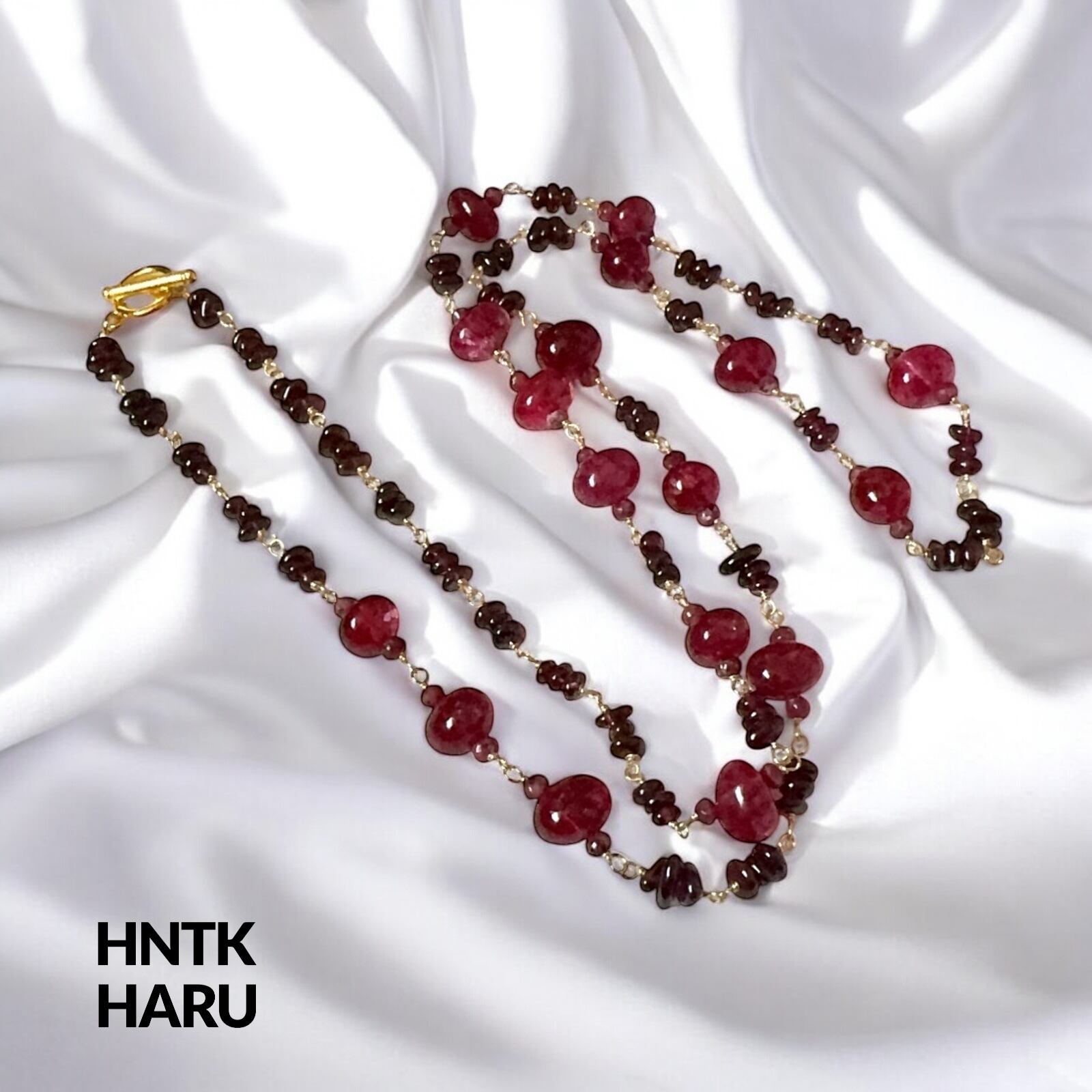 この機会に、HNTKのガーネット&染ピンククォーツロングネックレスをぜひお試しください!