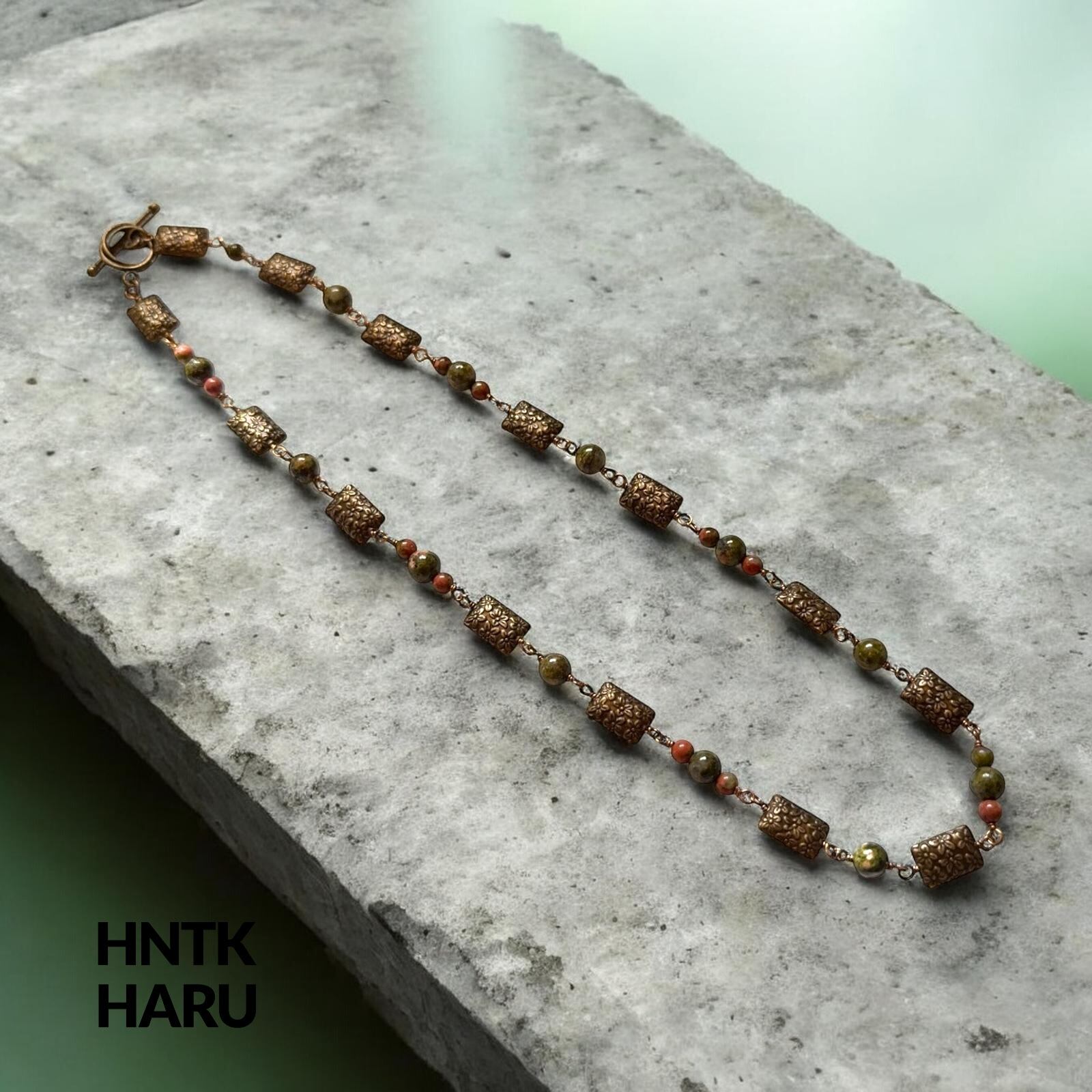 この商品は、ユナカイトの独特な模様と優雅なメタルパーツの組み合わせが特徴で、日常のコーディネートに温かみと個性を加えてくれるアイテムとしてお楽しみいただけます!