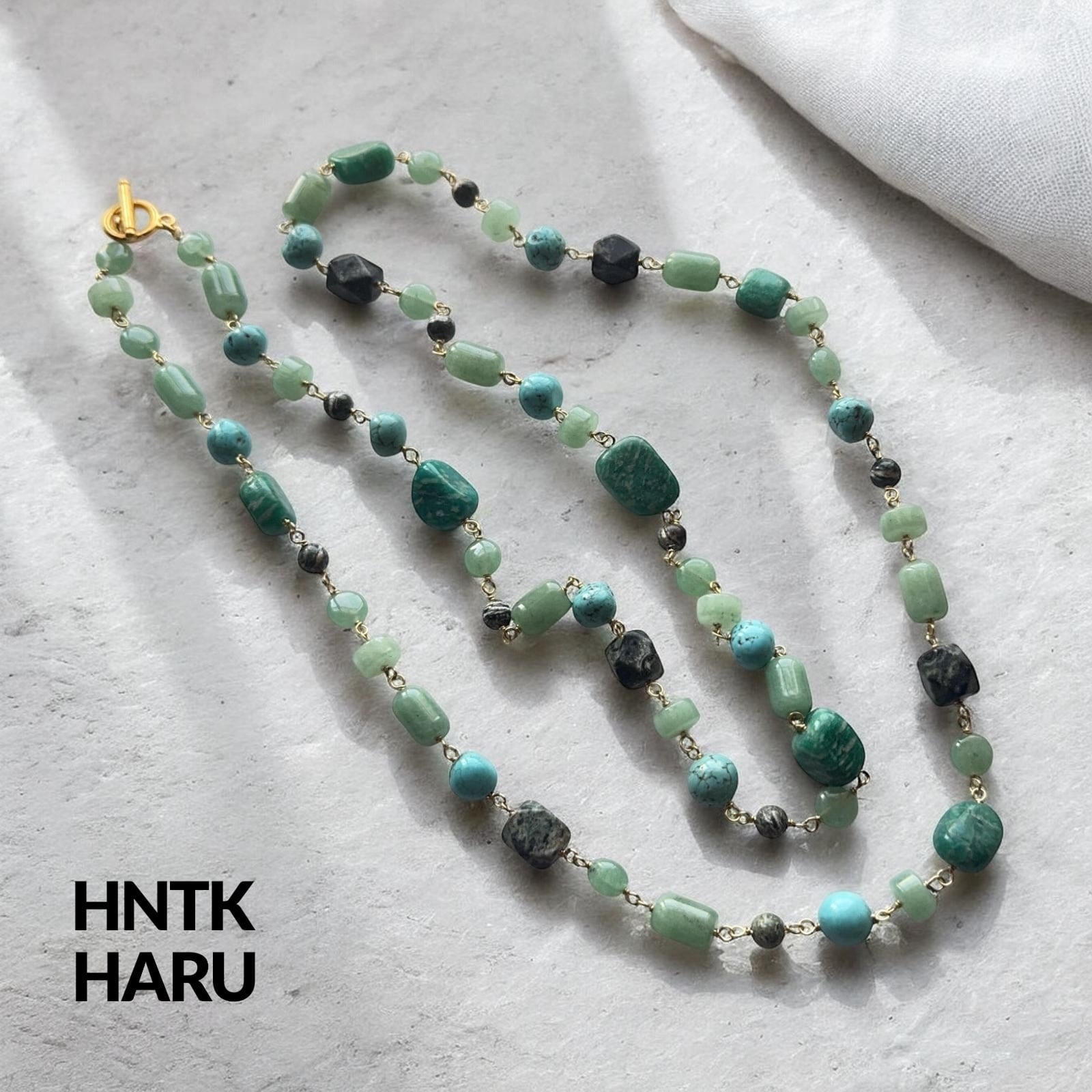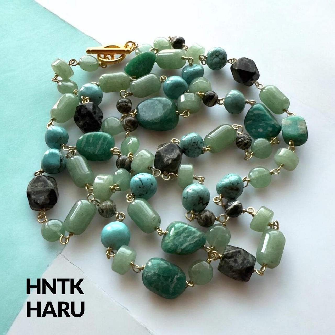 HNTK グリーンアベンチュリン&ロシアンアマゾナイトロングネックレス N0817は、グリーンアベンチュリンとロシアンアマゾナイトを使用した、個性的な魅力を放つアクセサリーです。