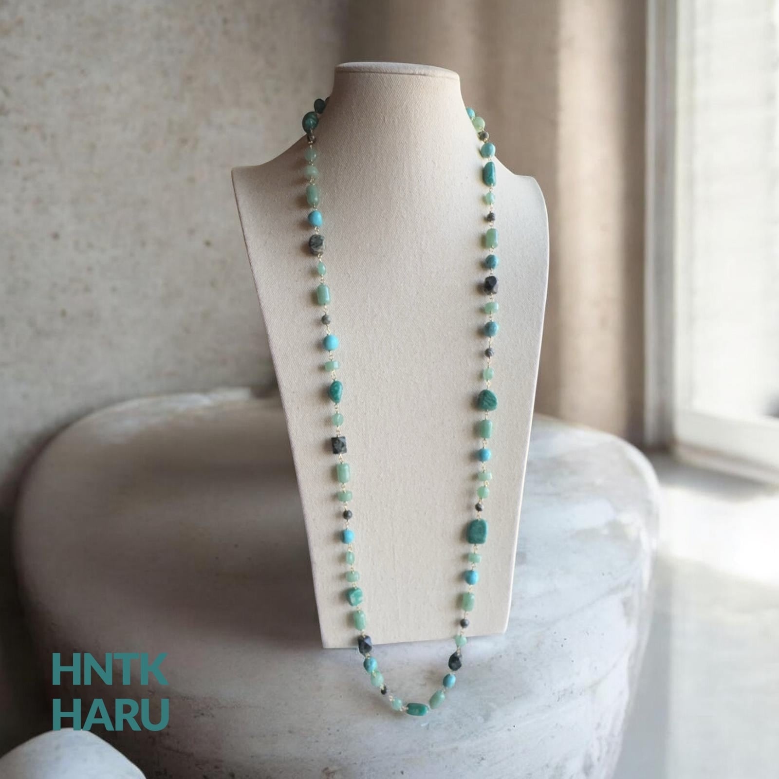この機会に、HNTKのグリーンアベンチュリン&ロシアンアマゾナイトロングネックレスをぜひお試しください!
