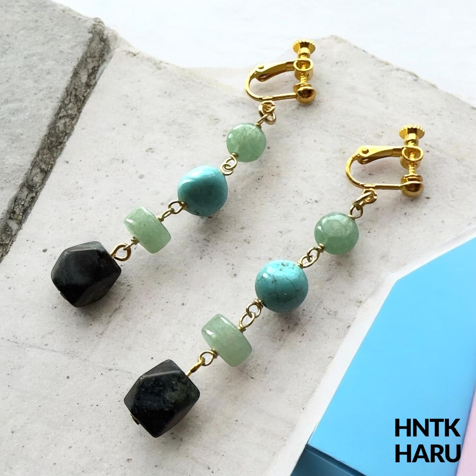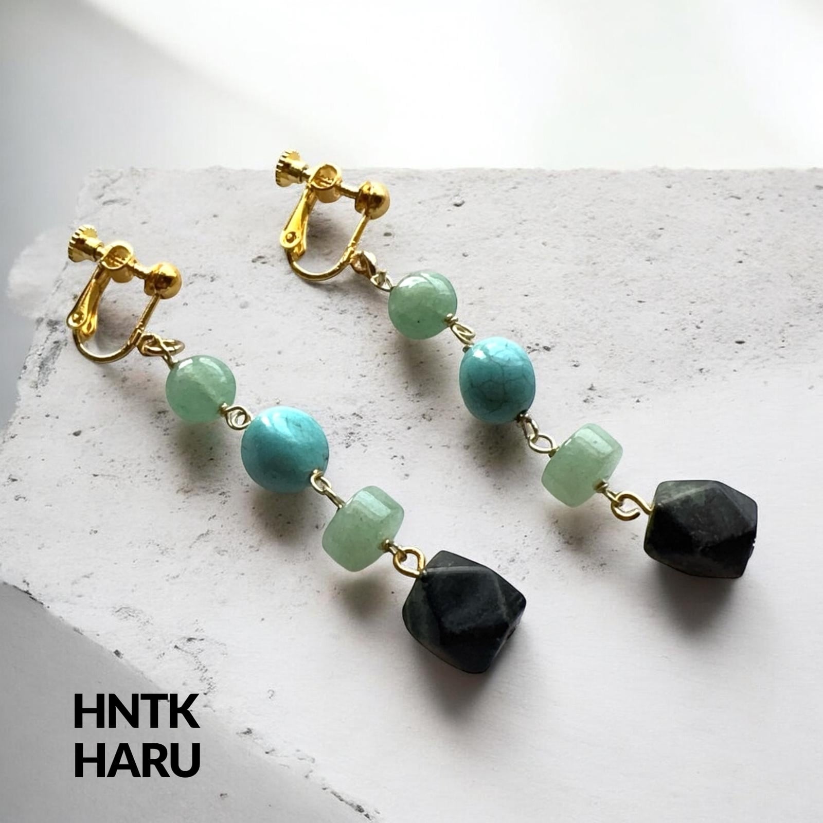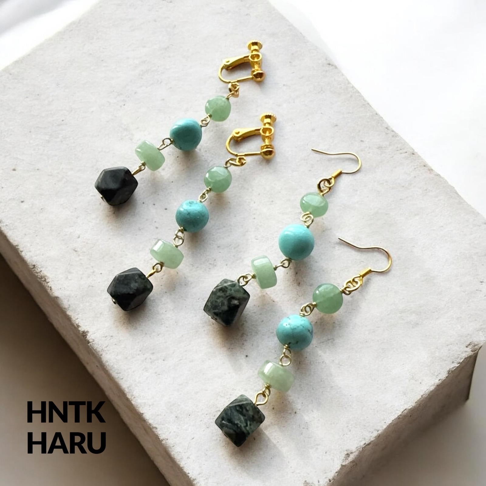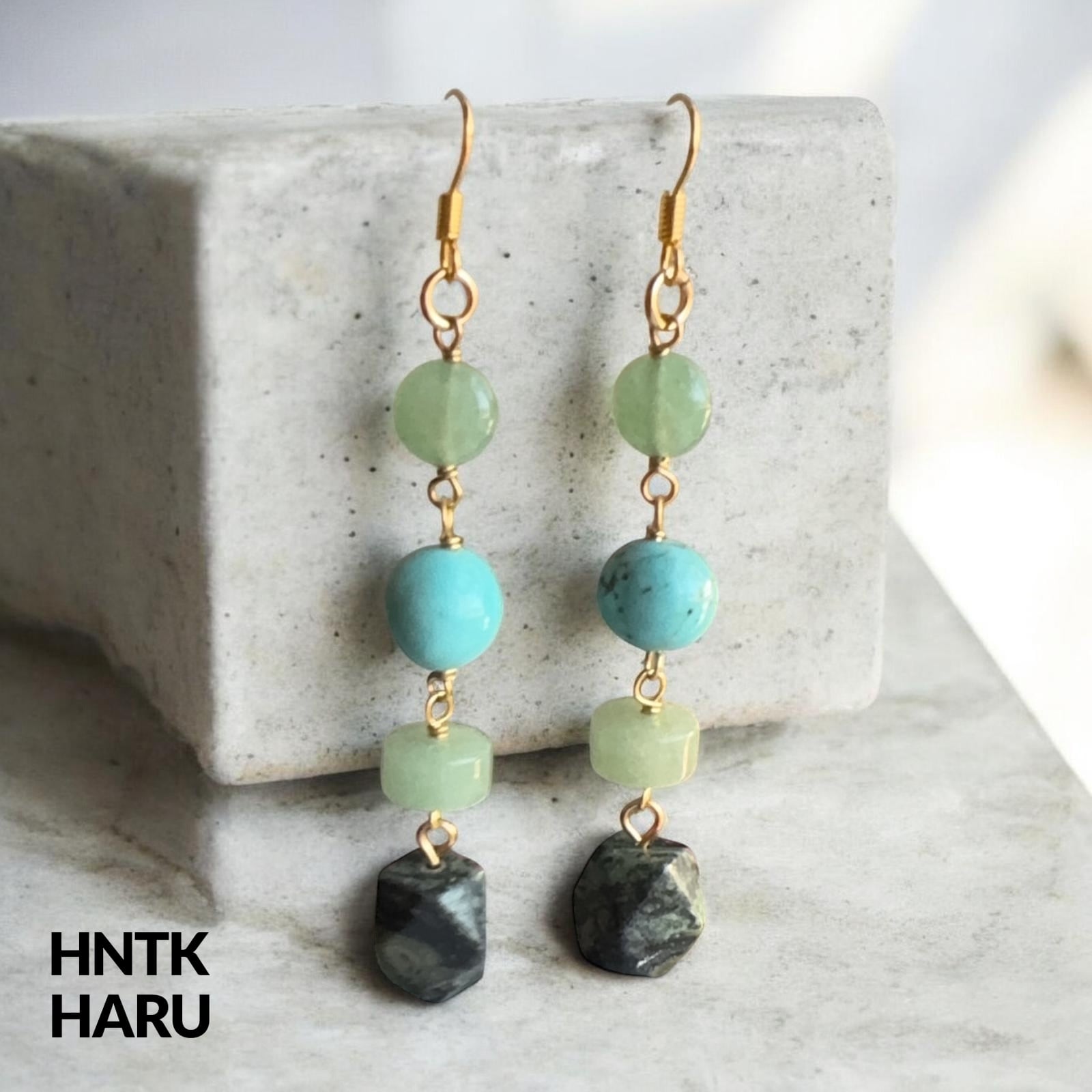 この機会に、HNTKのグリーンアベンチュリン&ガンババイヤリングピアスをぜひお試しください!