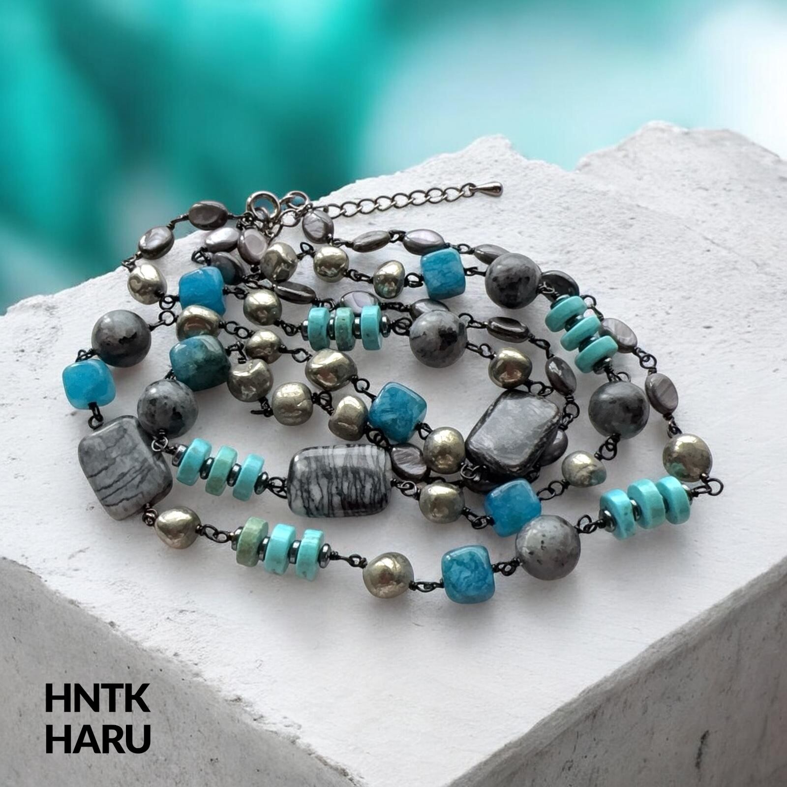 この機会に、HNTKのゼブラジャスパー&マグネサイトターコイズ ロングネックレスをぜひお試しください!