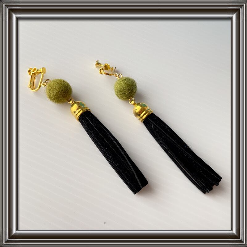 スウェードフリンジ部分は6.5cm、フェルトボールは15mm。