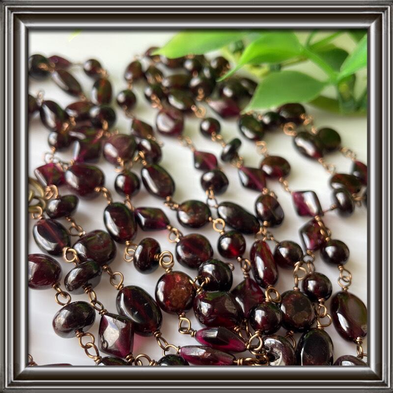 ガーネットだけを集めた長いネックレスです。二重にも、三重にも、Y時にもつけて頂けるネックレスです。