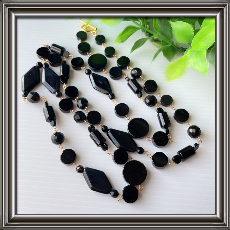 オニキスだけを使ったロングネックレス。
