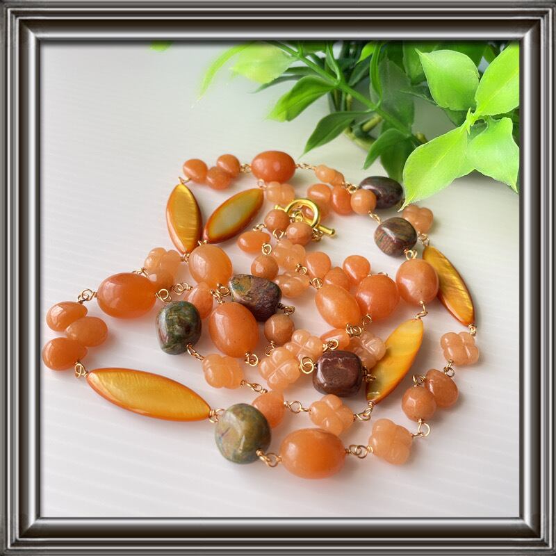 温かい落ち着いたオレンジのレッドアベンチュリン、山吹色のシェルマーキス。