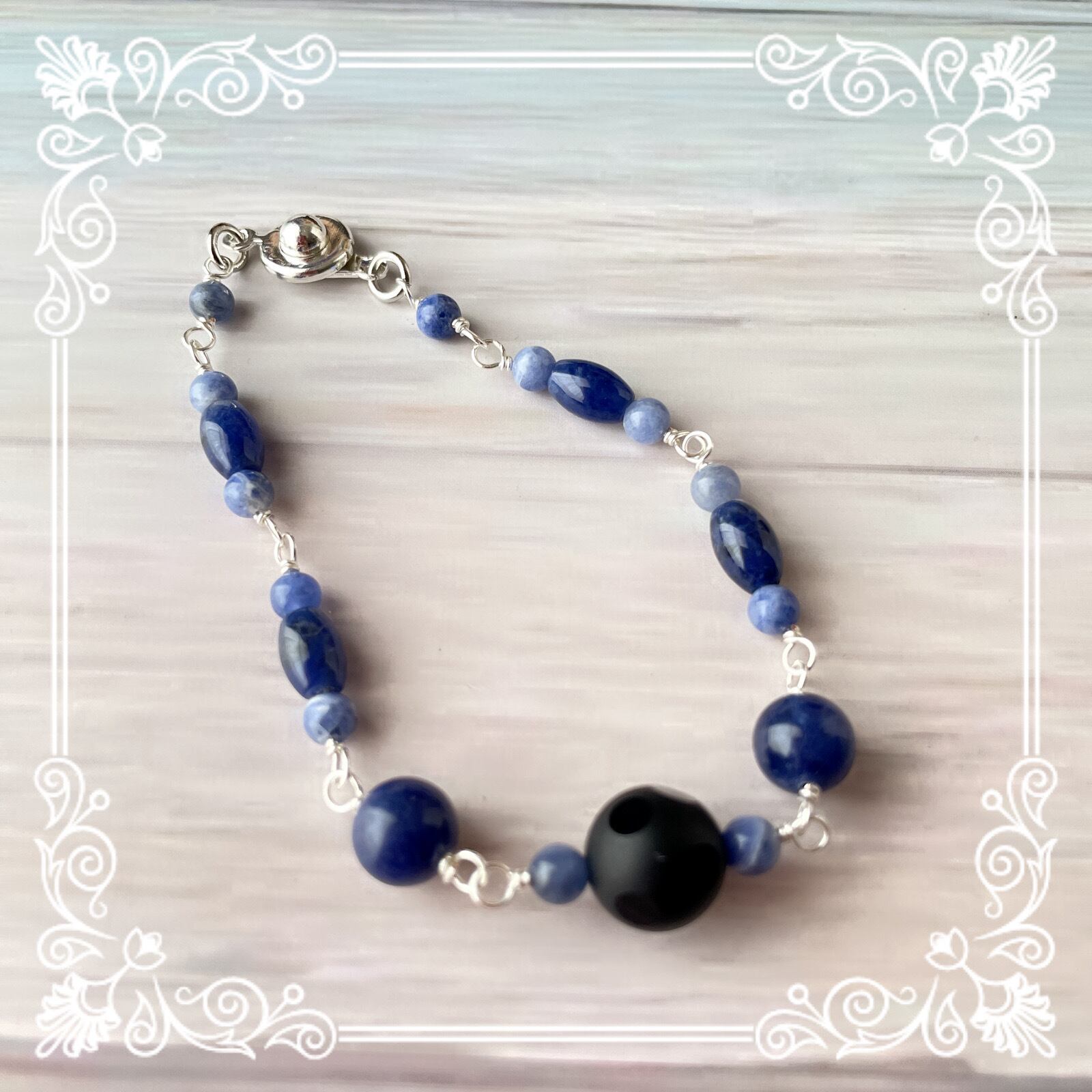シンプルな水玉オニキスとソーダライトが華やかさを演出するブレスレットです。