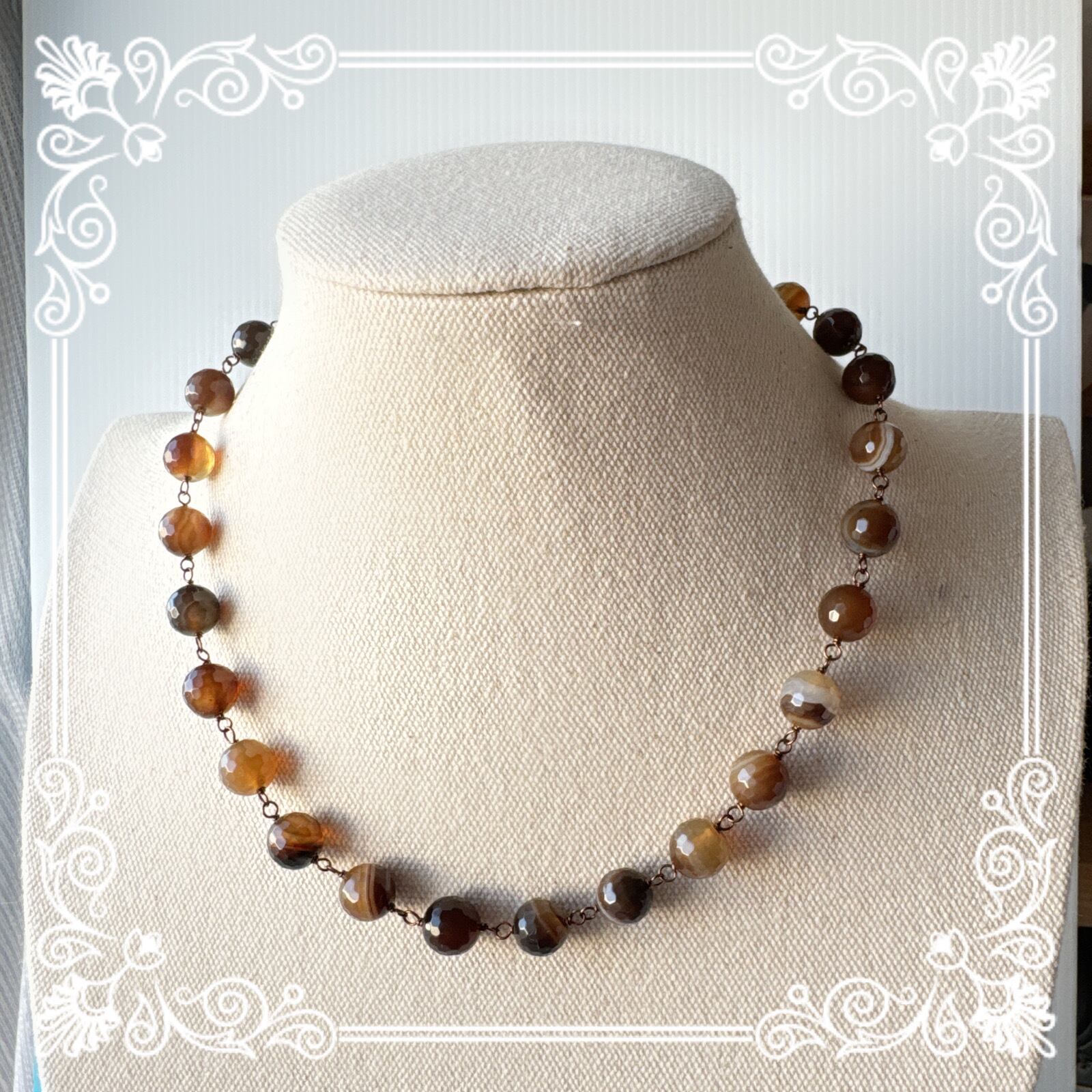 HNTK ブラウンストライプアゲートネックレス N0694