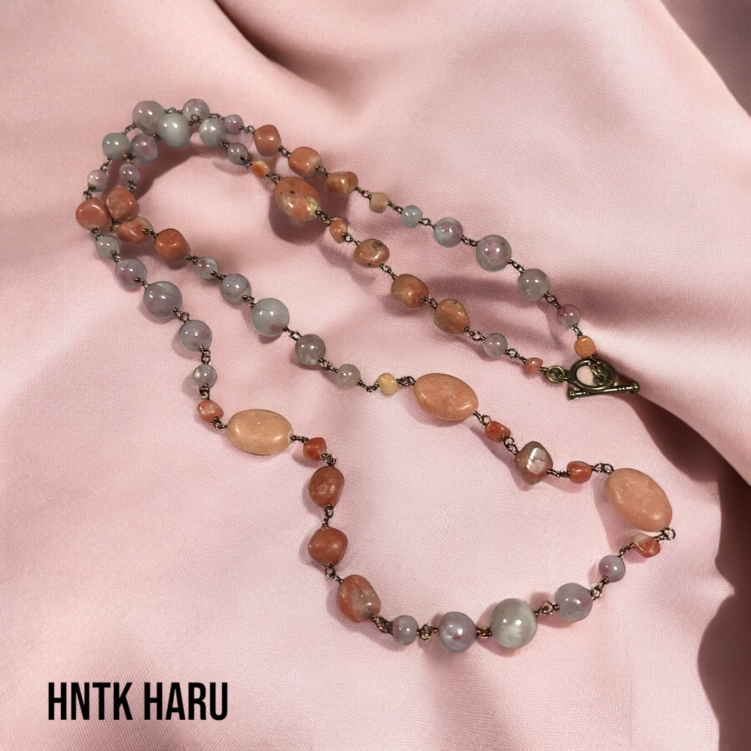 HNTK 桜花石&ラベンダーアゲートロングネックレス N0722は、優雅な桜花石と柔らかなラベンダーアゲートを組み合わせた、魅力的なロングネックレスです。