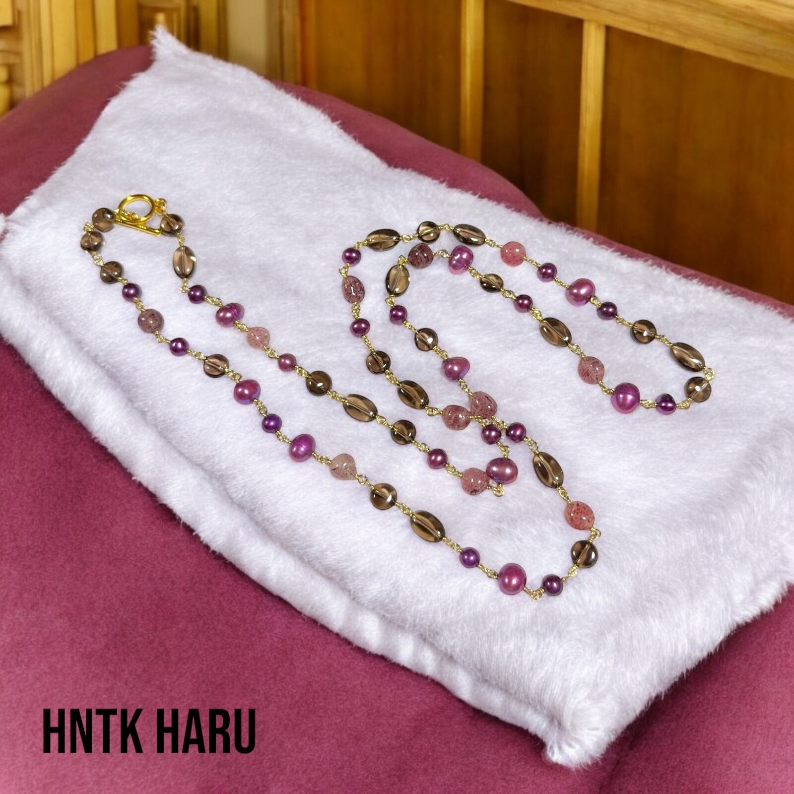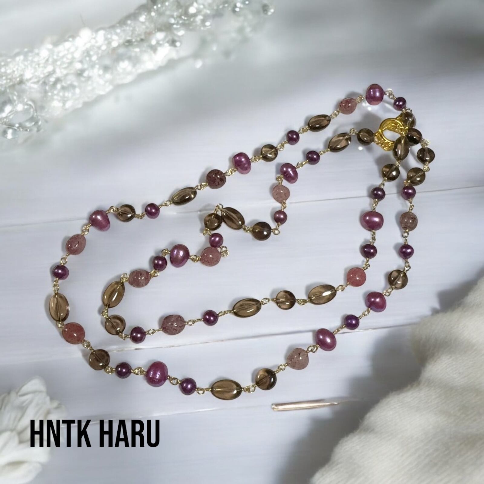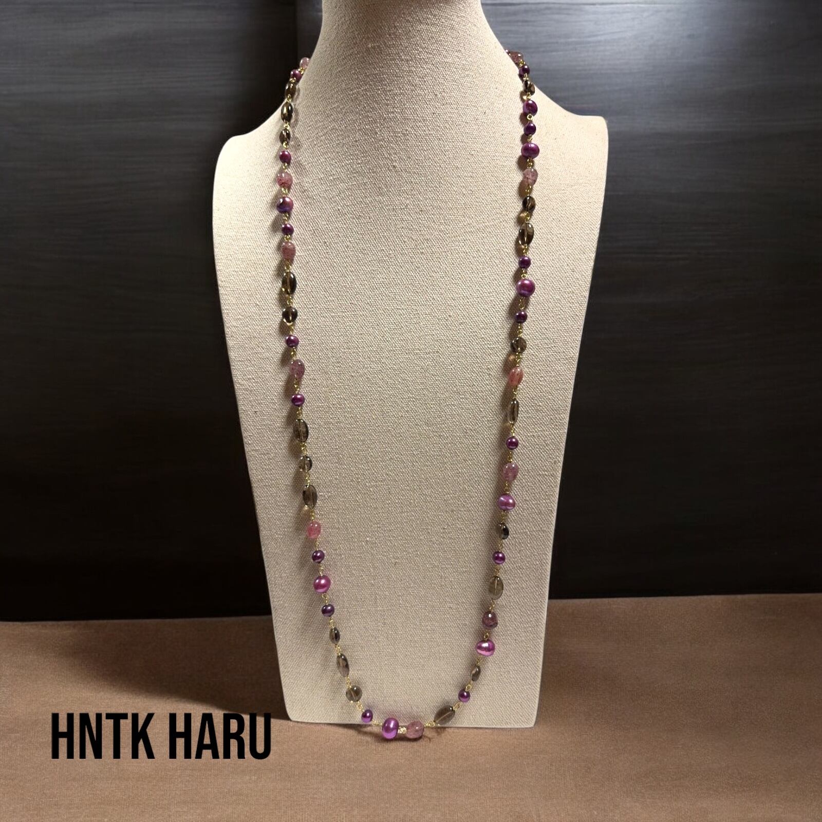 HNTK スモーキークォーツ&ピンクエピドートロングネックレス N0731は、神秘的なスモーキークォーツと愛らしいピンクエピドートを使用した、魅力的なロングネックレスです。